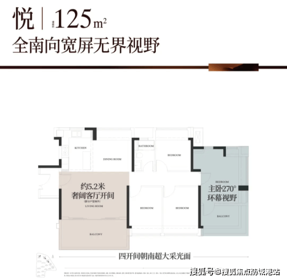 对于初次改善的三口之家来说,125平方米的四房两卫户型无疑是最佳入门选择。该户型采用了典范的四开间朝南设想,最大限度地引入了阳光和清风。两个南向卧室均配备了270°转角飘窗,不只扩大了室内视野,更让采光通风结果达到了极致。清晨,第一缕阳光透过飘窗洒进房间,夸姣的一天;薄暮,落日的朝霞映照正在窗前,营制出温暖的空气。